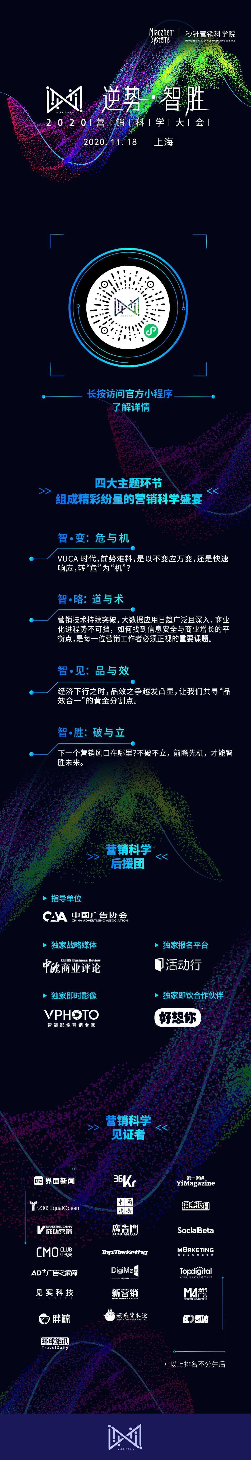 虽迟终至,精彩纷呈。2020年度的营销科学大会,将于11月18日,于上海和大家再次见面。